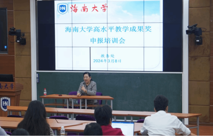 2024年3月8日下午,海南大学高水平教学成果奖申报培训会在海甸校区三号教学楼举行,本次培训会邀请的专家是中南大学国家双创示范基地主任、中南大学创新创业创造与人才发展研究中心主任杨芳教授作专题报告,各学院分管教学副院长,本科专业责任教授,教学成果奖培育项目负责人及学院骨干教师近70人参加。培训会由教务处副处长耿刚主持。