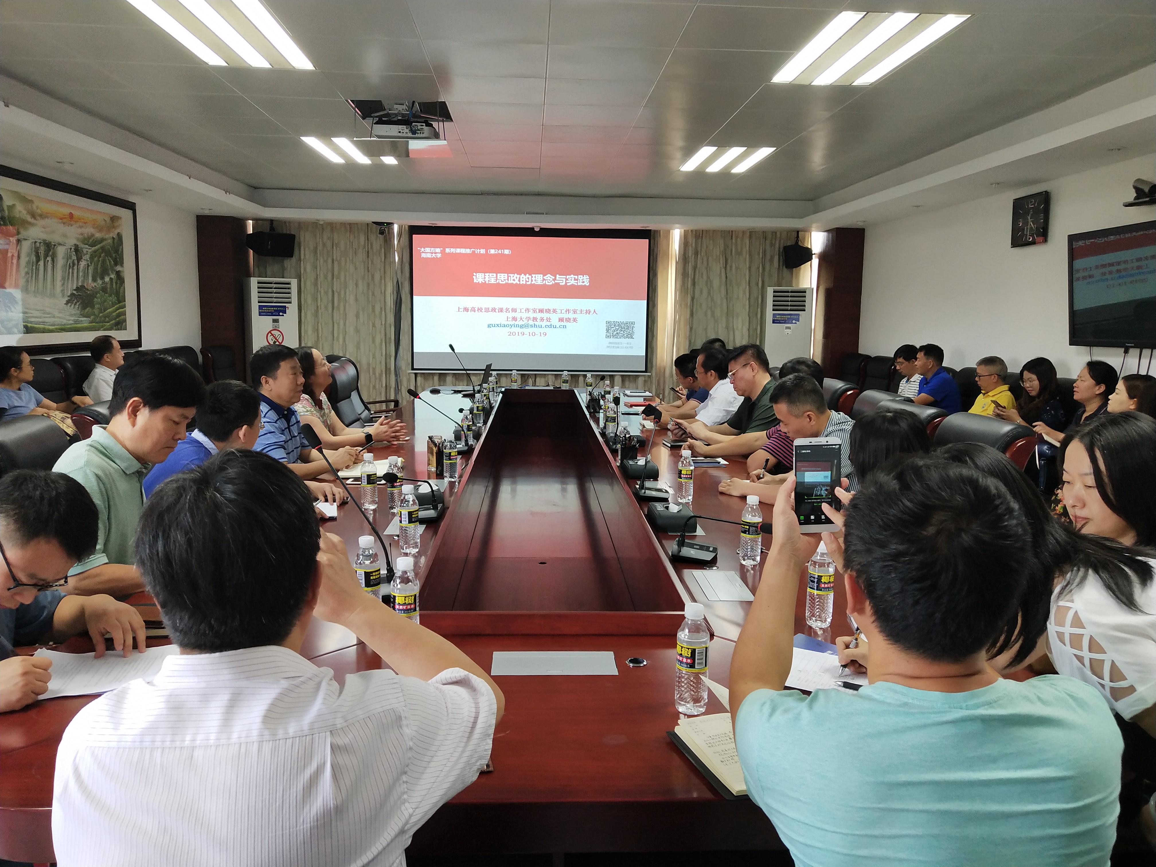 10月19日下午,在海南大学行政办公楼401会议室,上海大学教务处副处长顾晓英教授为学校全体教学副院长及有关骨干教师作“课程思政的理念与实践”的专题报告会。报告会由教务处处长张云阁教授主持。