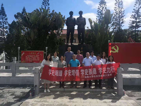 为进一步提升机关党员干部的责任感、使命感,弘扬党的光荣传统和优良作风,传承红色基因,弘扬革命精神,海南大学机关第八党支部开展“学党史·悟思想·办实事·开新局”主题党日活动,于6月16日组织全体党员参观海南母瑞山革命根据地纪念园。