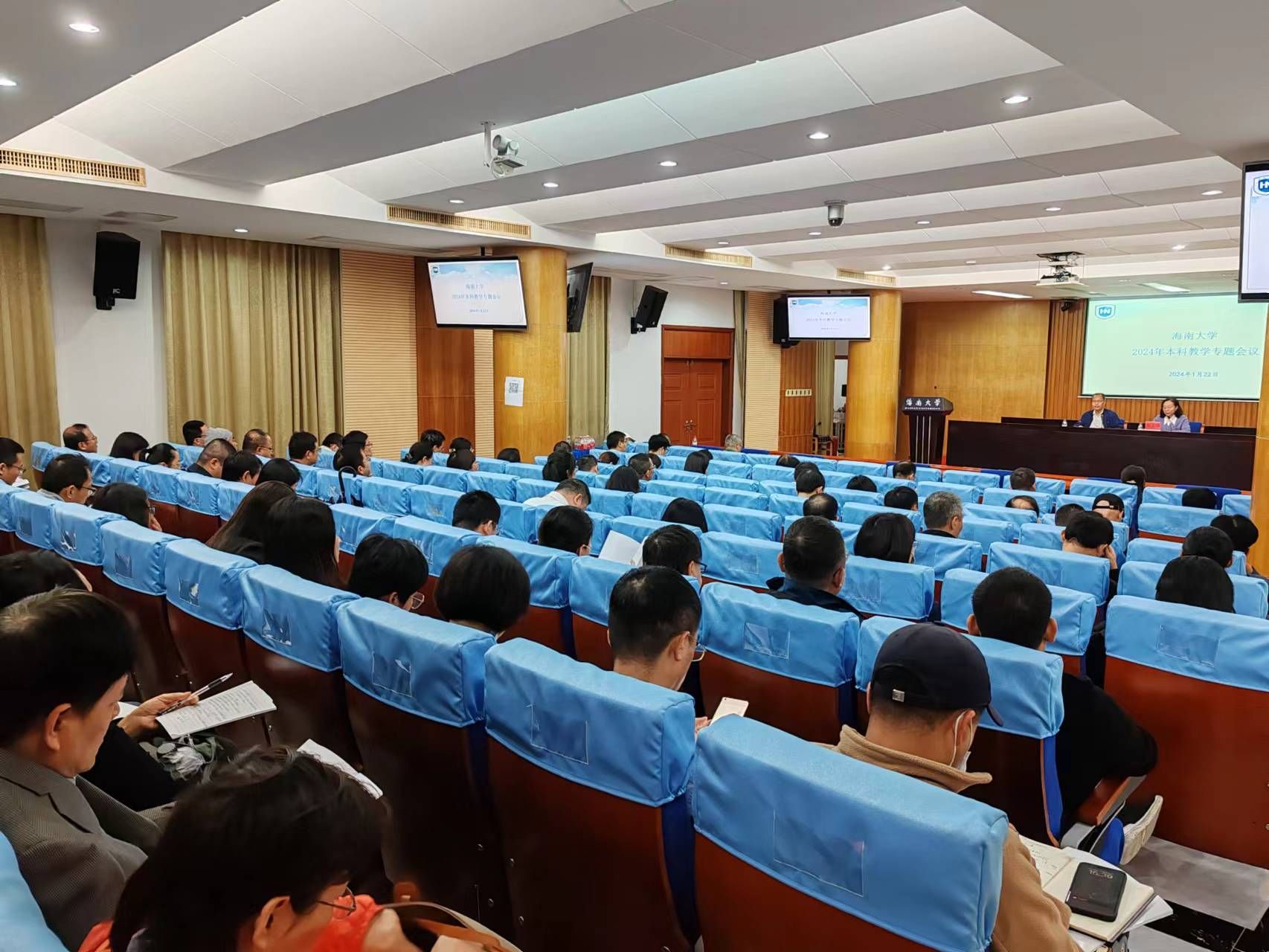 1月22日下午,海南大学2024年本科教学专题会议在海甸校区行政办公楼一楼报告厅举行。本次会议由教务处组织,学校教学质量评估中心、各二级学院本科教学院长、专业责任教授、基础课程主讲教授(师)及实验教学中心主任参加。会议由教务处处长王志刚主持。