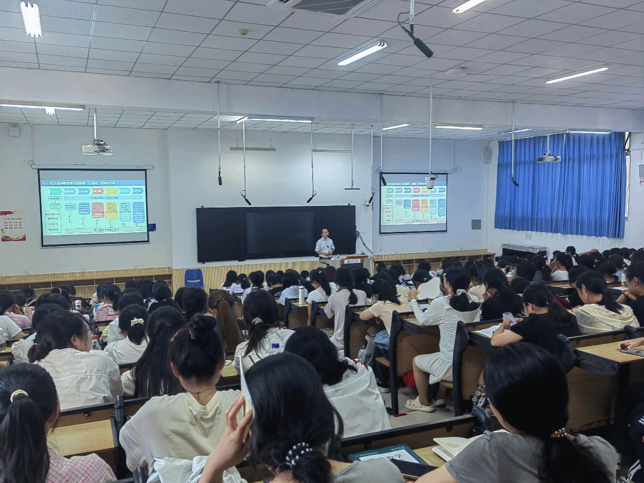 本站讯(通讯员 余力力)9月29日下午,5教113教室座无虚席,海南大学深化完全学分制改革天工书院交流会在5教113教室举行。教务处副处长耿刚、赵银梅,天工书院党委副书记武丹,教务处教材科科长余力力,天工书院2024级辅导员黄瑜、郭馨艳,以及天工书院2024级新同学代表约190余人参加了交流。