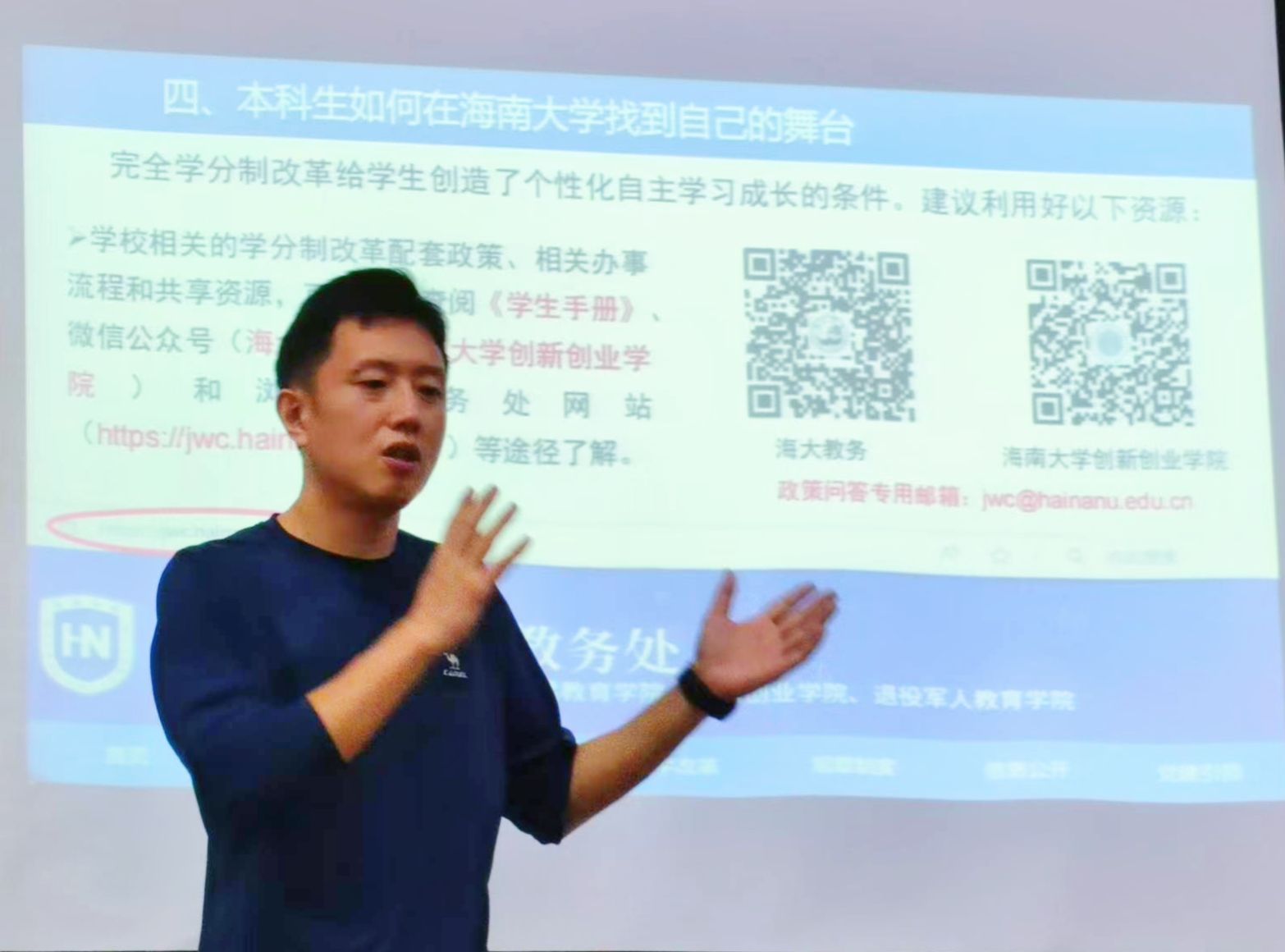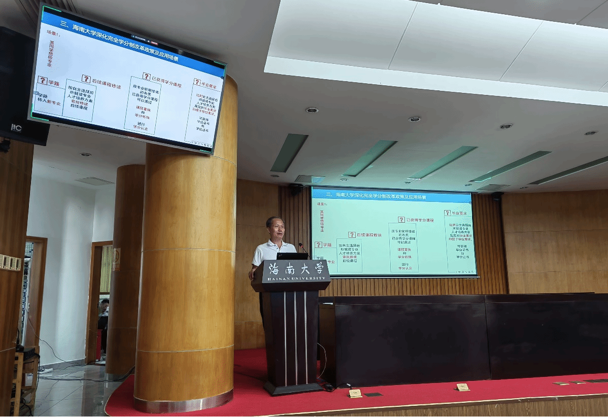 为切实加强学校深化完全学分制改革政策宣传,进一步提高广大师生对改革各项工作举措及相关政策的知晓率和熟悉度,自9月26日起,学校组建学分制改革政策宣讲团,分别以学院、书院为主体,以“新生入学教育与导学”课程为载体,全方位开展政策宣传活动。以全校教学管理队伍、全校辅导员队伍为主体,组建28个宣讲小组;刘谦副校长为各部门负责人、各学院院长、书记、各专业责任教授、主讲教授(师)、全校教学管理队伍(教学副院长、教学秘书)进行政策辅导讲座;王志刚处长为宣讲团进行政策宣讲统一培训、统一宣讲PPT;印制发放《海南大学深化完全学分制改革35问》600册。