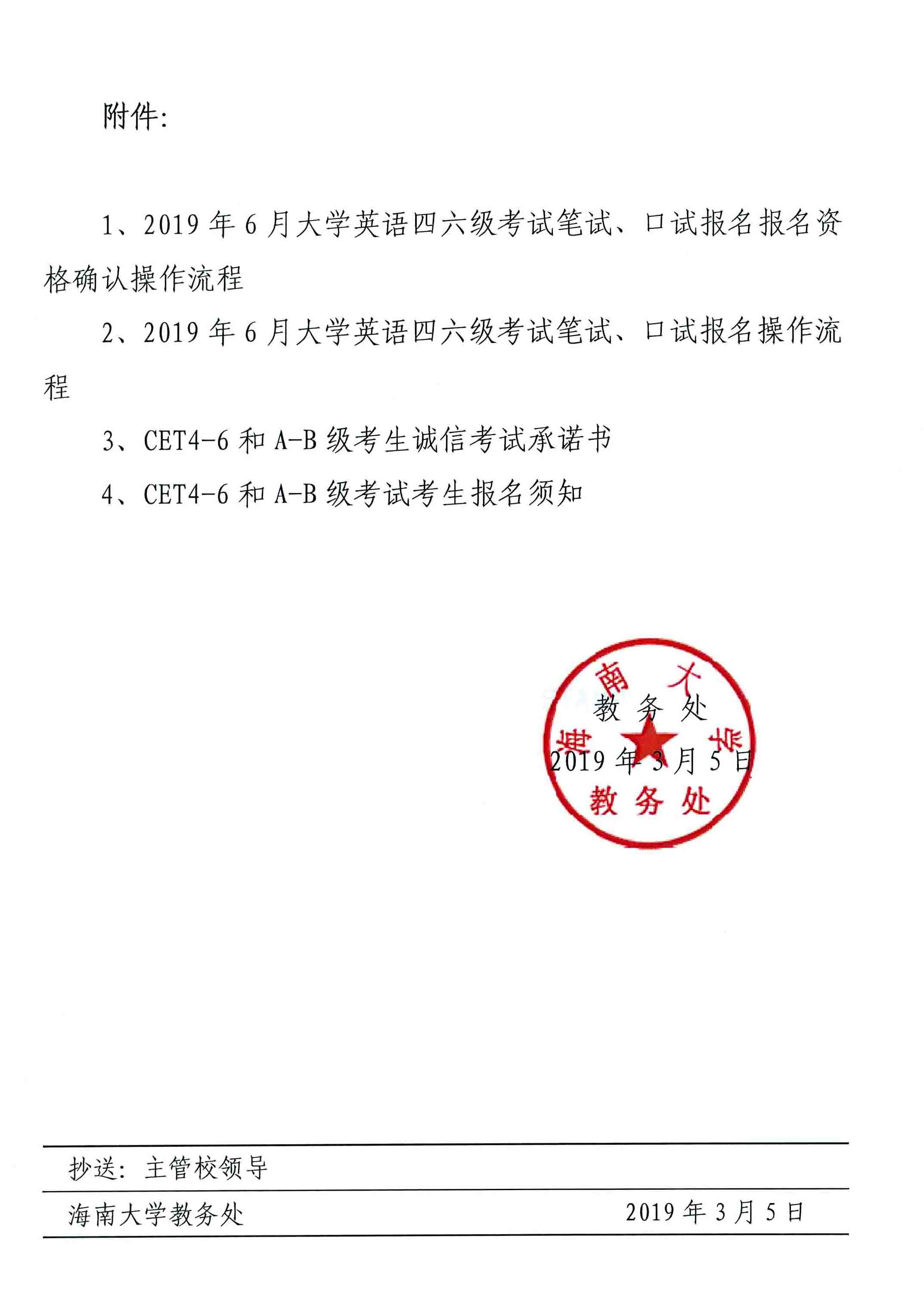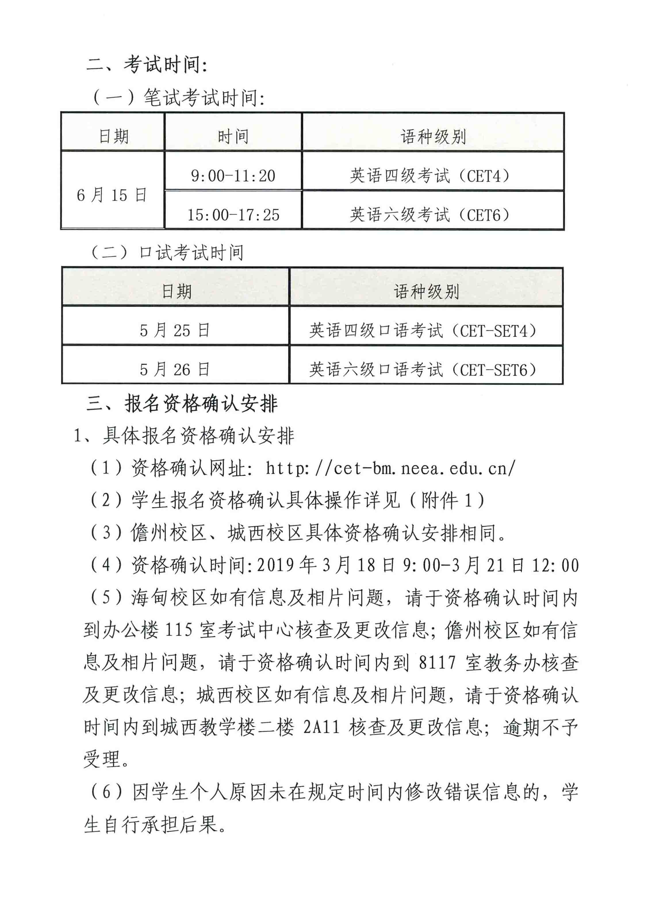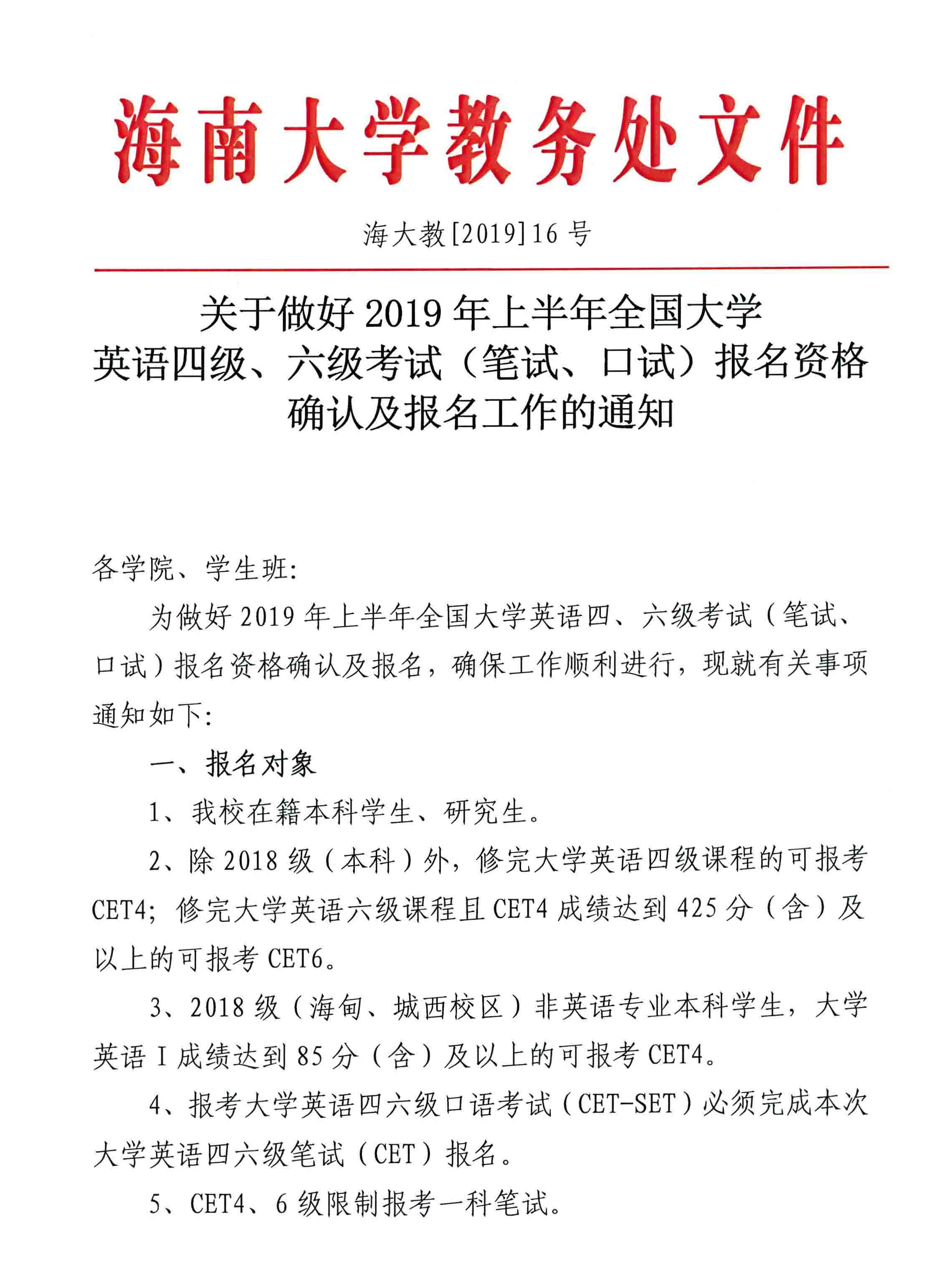 关于做好2019年上半年全国大学英语四级、六级考试(笔试、口试)报名资格确认及报名工作的通知