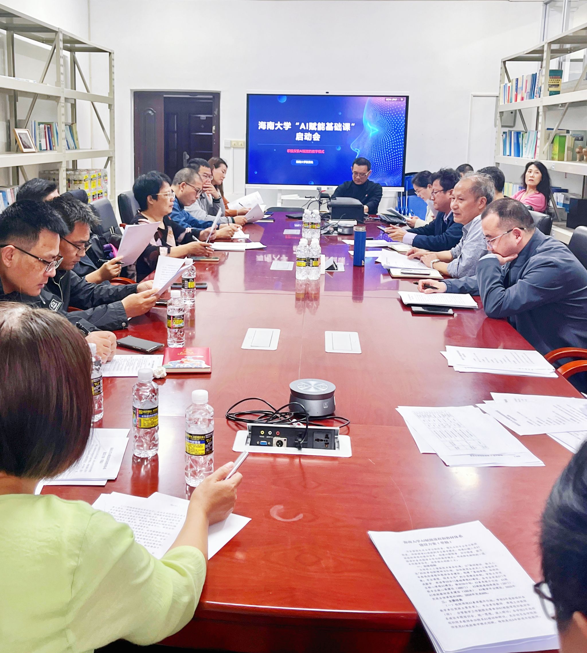 2025年2月19日下午,海南大学在办公楼一楼107会议室成功举办了AI赋能基础课程建设启动会。此次会议由教务处处长王志刚主持,教务处相关人员及全校基础课程主讲教授、主讲教师共同参与。