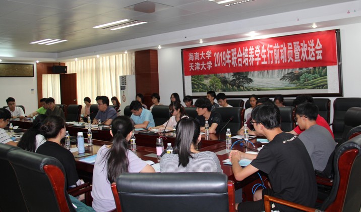 2019年6月26日下午,海南大学与天津大学2019年联合培养学生行前动员暨欢送会在海南大学行政办公楼401会议室召开,教务处、学生工作部(处)相关人员、相关学院辅导员及全体学生参加会议,会议由教务处黄绵佳副处长主持。