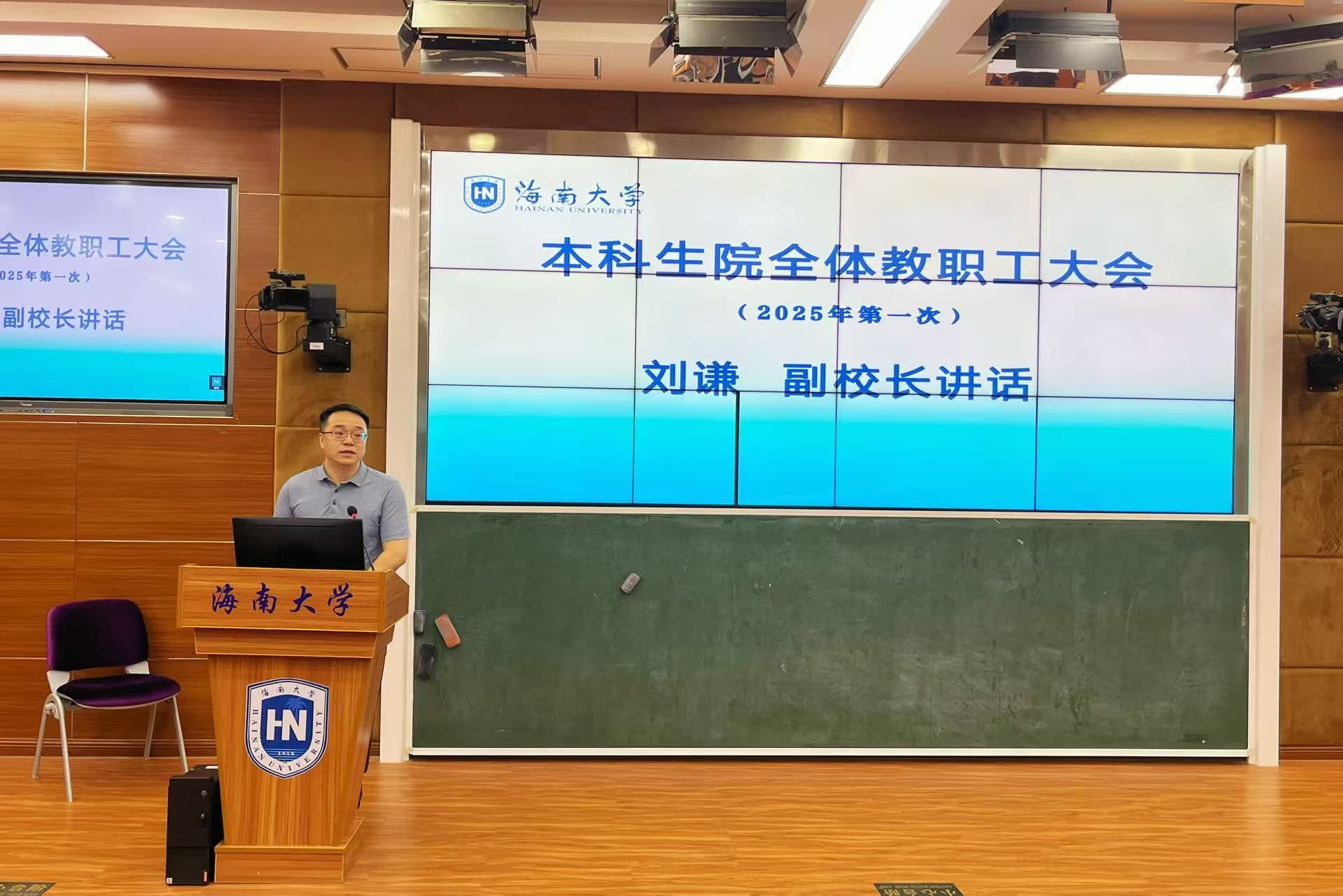 10月16日下午,海南大学本科生院第一次全体教职工大会在3教211室召开。学校党委常委、副校长、本科生院院长(兼)刘谦参加会议。