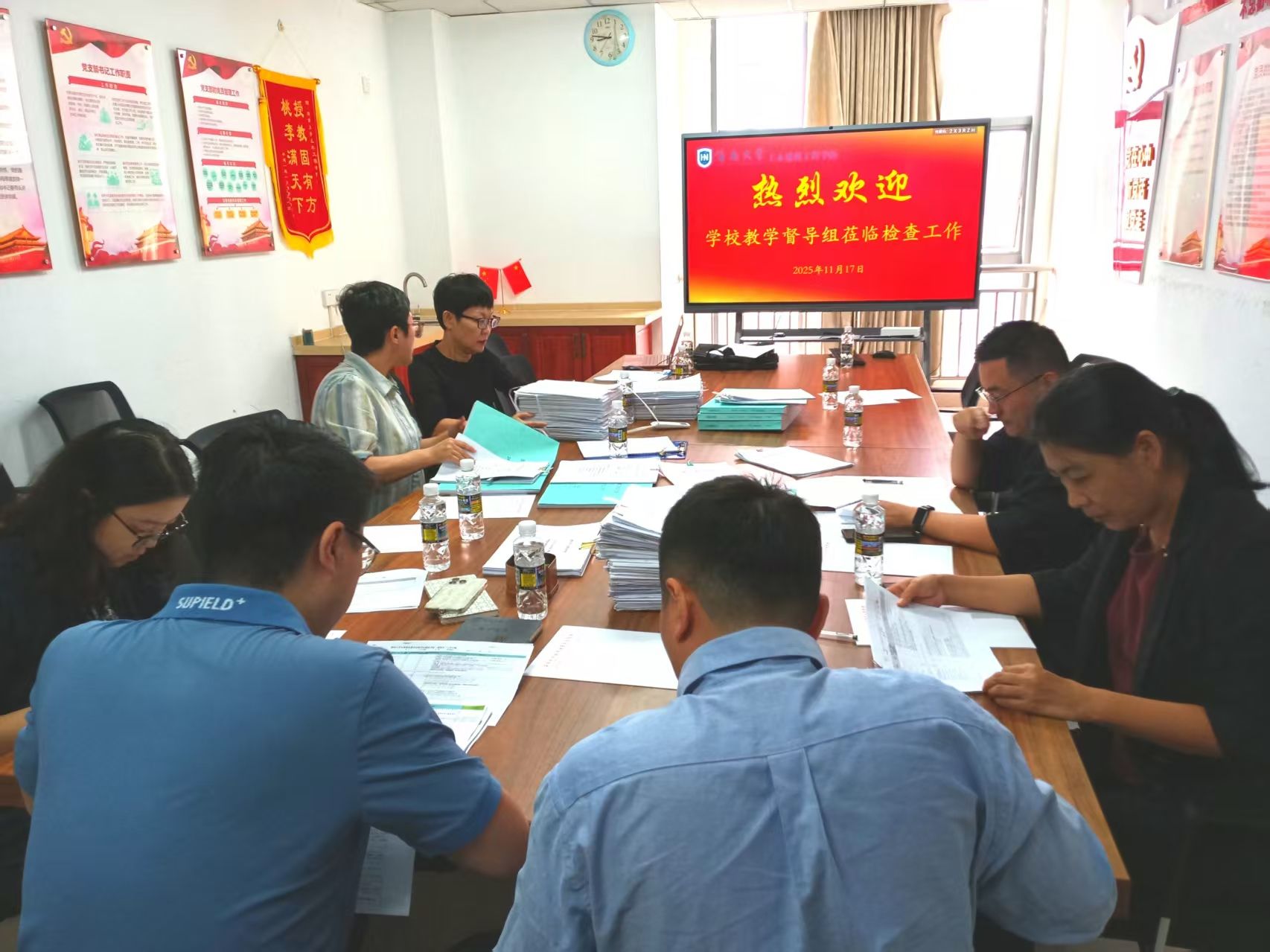 检查组在观澜湖校区检查教学材料规范情况