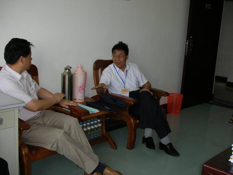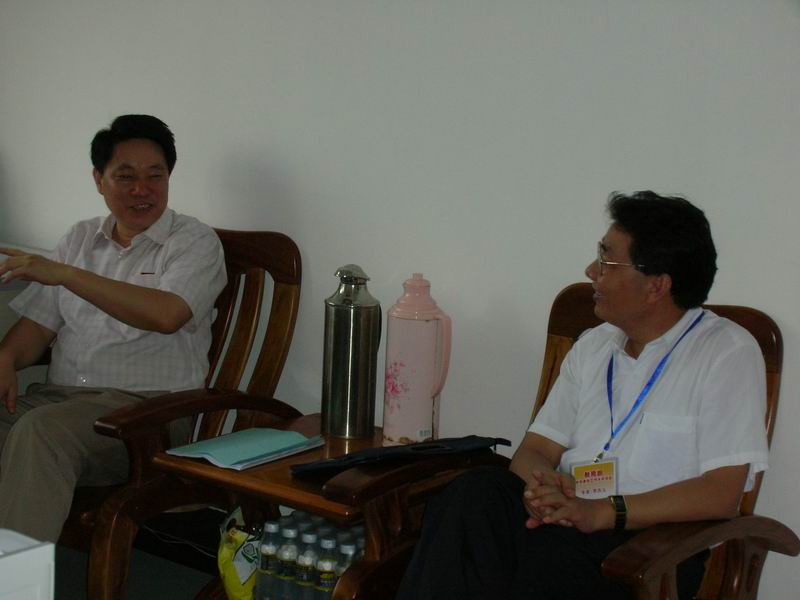 教务处处长程立生教授(左)向专家李志义教授介绍实践教学科基本情况(摄影:杨海峰)