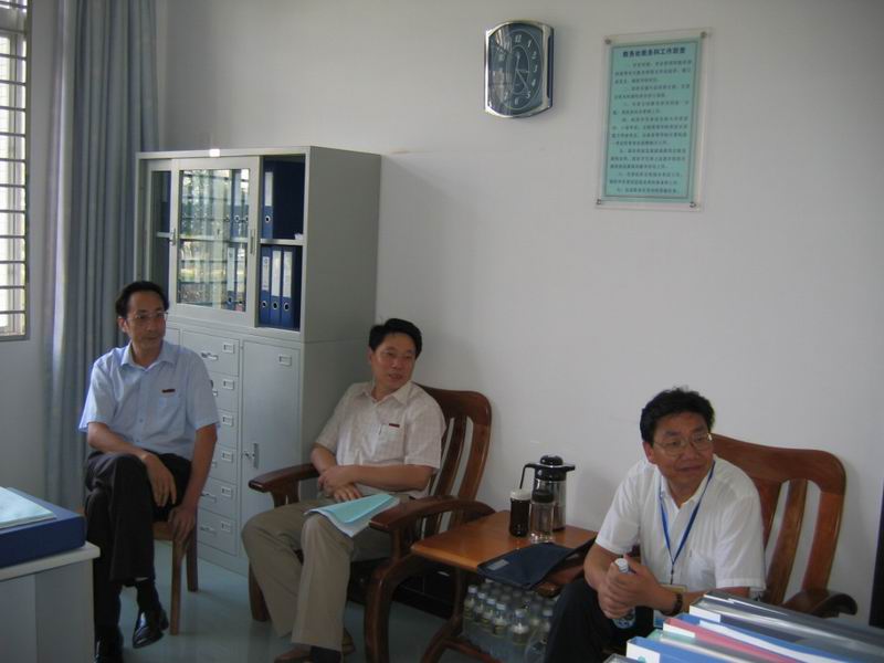 教育部专家李志义教授(右)、教务处处长程立生教授(中)和副处长欧阳克毅副教授在教务科听取汇报(摄影:杨海峰)