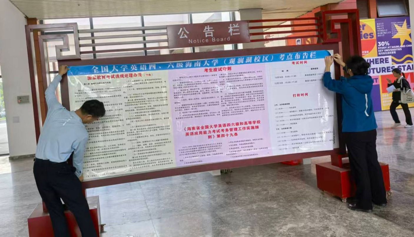 牵头召开后勤、保卫、基建、校医院、学生工作部、研究生院多部门协调会议以统筹考务保障工作,协调各分校区于考前一日完成考场内部及外围环境标准化布置,全力保障考试期间考场秩序;考前一周组织 70 余名学生志愿者,在海甸校区、观澜湖校区、儋州校区、崖州校区(崖城中学考点)开展考前试音工作,实现所有考场全覆盖。协同各学院开展考前考风考纪教育,制作并悬挂纪律宣传横幅,常态化提醒考生严守考试纪律。