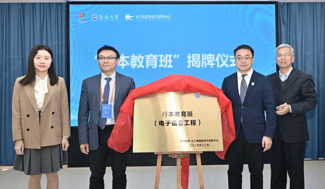 12月17日下午,海南大学-长三角国家技术创新中心“行本教育”举行开班仪式。海南大学党委常委、副校长刘谦,信息与通信工程学院党委书记邓秀成,长三角国家技术创新中心行本教育工作组张志清、谭恺玥参加开班仪式,仪式由海南大学本科生院副院长(负责日常工作)张磊主持。