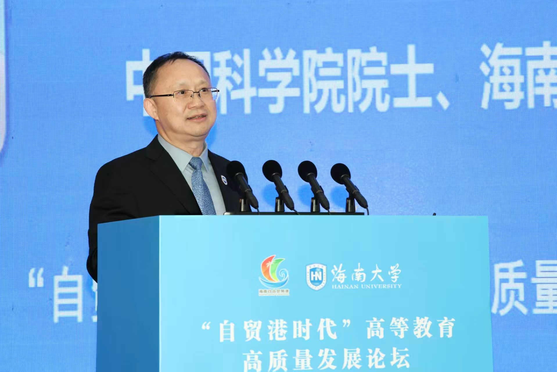 12月17日上午,海南大学举办“自贸港时代”高等教育高质量发展论坛。中国科学院院士、宁波东方理工大学校长陈十一发言。宣传部 摄。