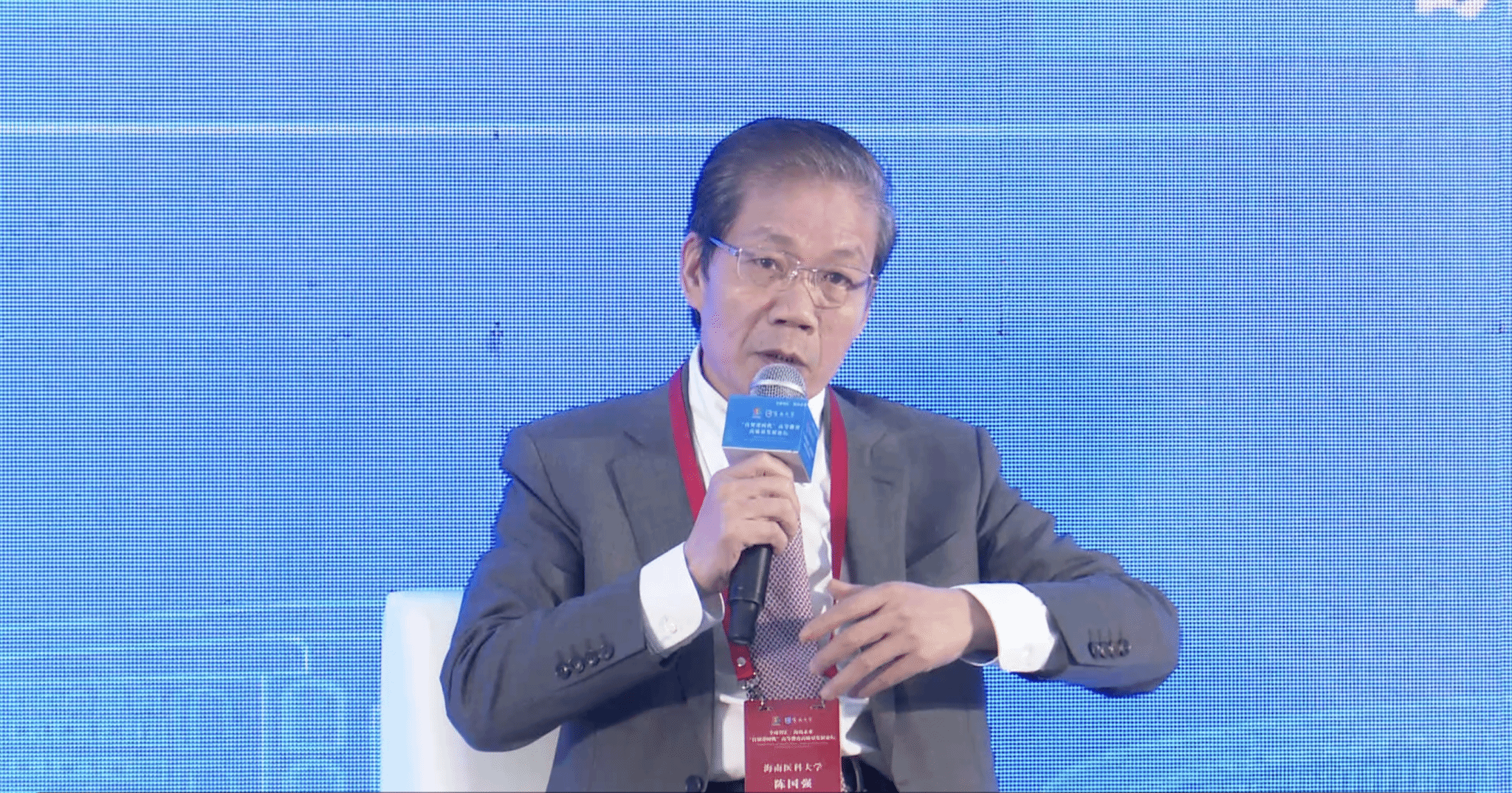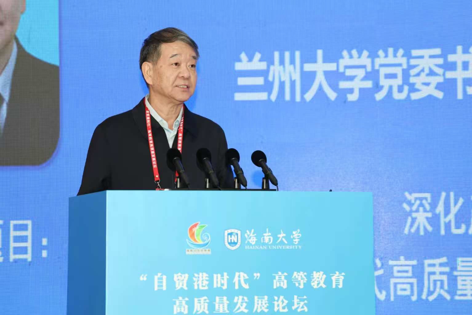 12月17日上午,海南大学举办“自贸港时代”高等教育高质量发展论坛。中国科学院院士、海南医科大学校长陈国强发言。宣传部 摄。