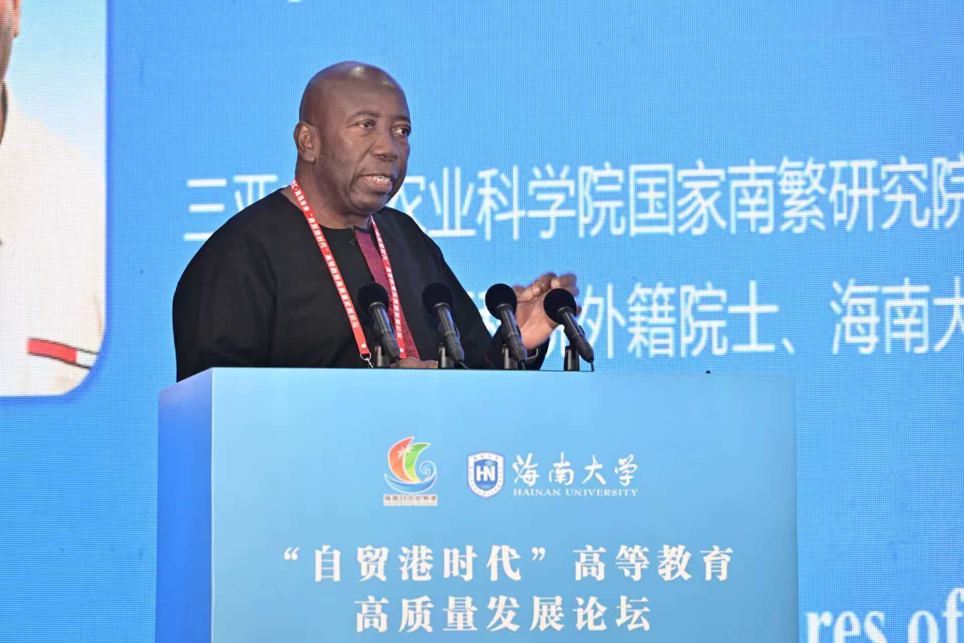 12月17日上午,海南大学举办“自贸港时代”高等教育高质量发展论坛。中国工程院外籍院士、非洲科学院原院长菲利克斯·达帕雷·达科拉作题为《高等教育的潜在价值:高校助推地方社会与经济发展》的主旨报告。宣传部 摄。