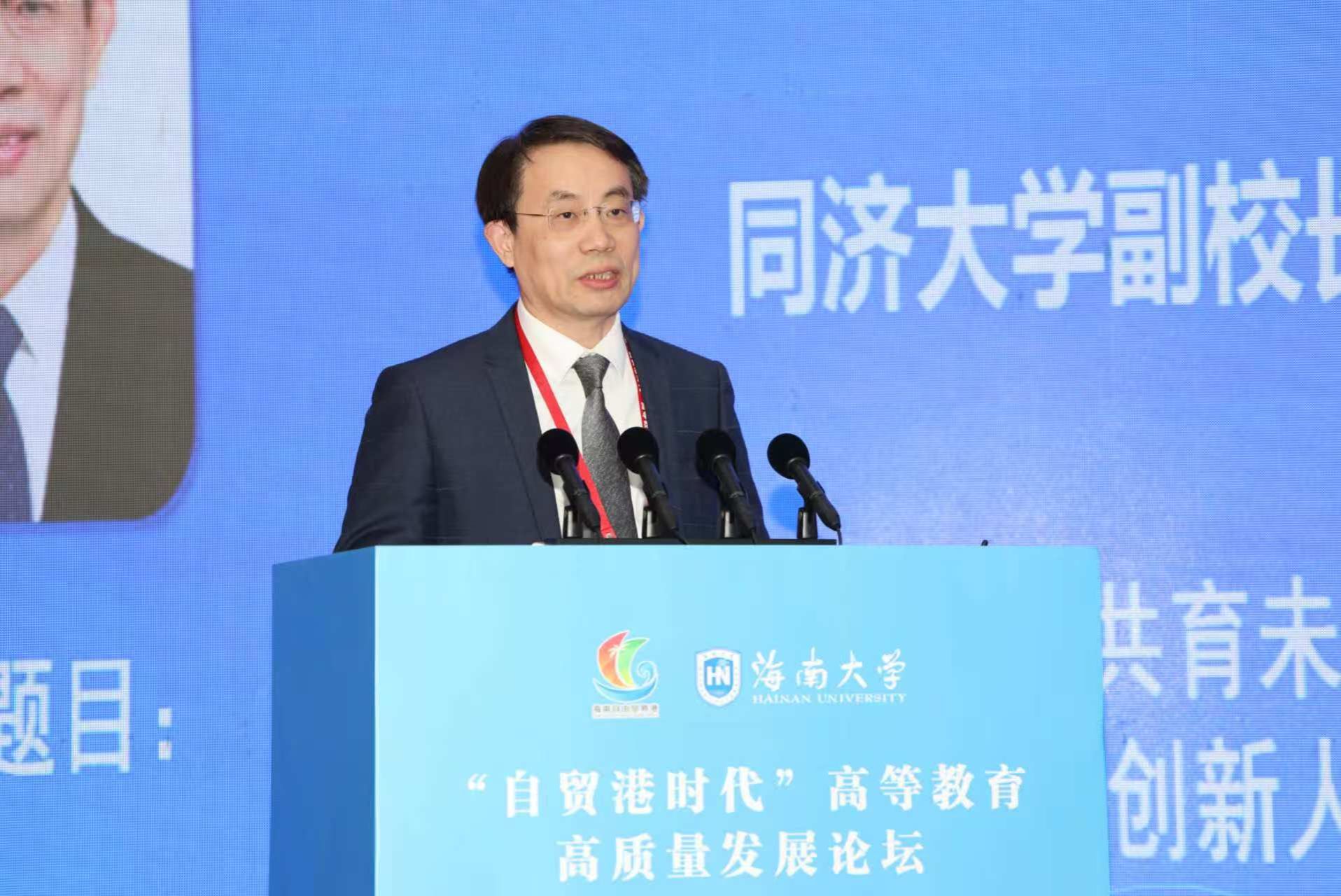 12月17日上午,海南大学举办“自贸港时代”高等教育高质量发展论坛。同济大学副校长许学军作题为《融合创新 共育未来 同济大学国际化拔尖创新人才培养路径》的主旨报告。高可贺 摄。