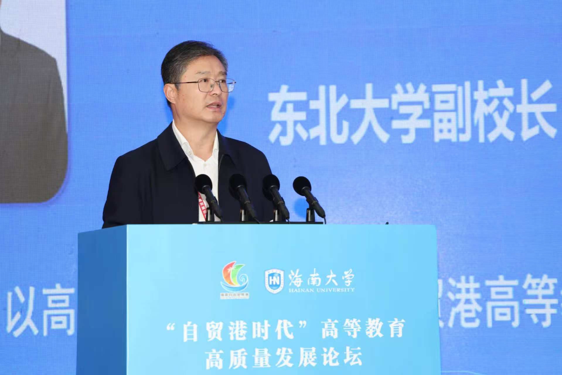12月17日上午,海南大学举办“自贸港时代”高等教育高质量发展论坛。东北大学副校长徐峰作题为《以高水平开放促进海南自贸港高等教育高质量发展》的主旨报告。高可贺 摄。
