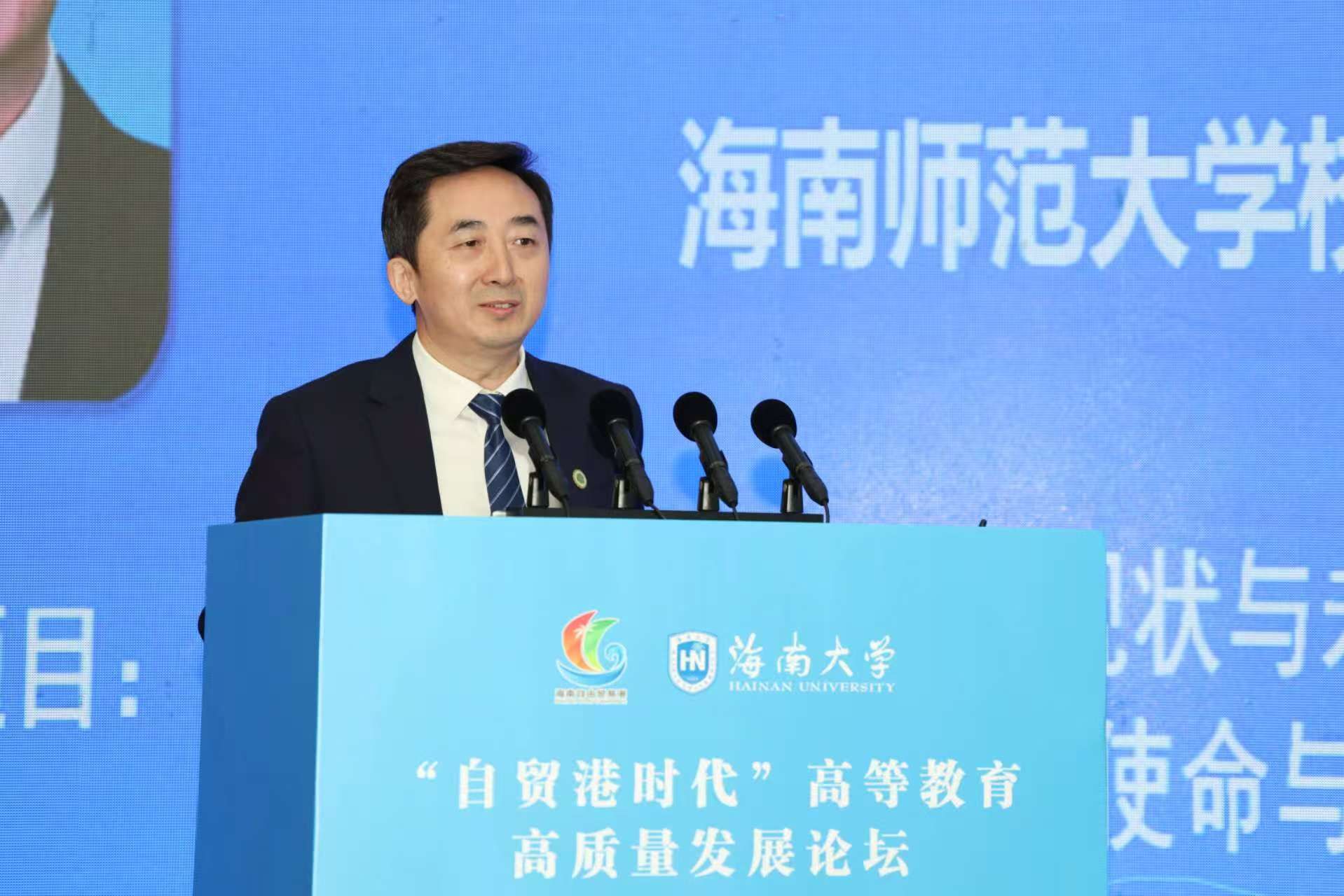 12月17日上午,海南大学举办“自贸港时代”高等教育高质量发展论坛。海南师范大学校长聂清斌作题为《教育强国背景下师范大学的发展路径选择》的主旨报告。高可贺 摄。