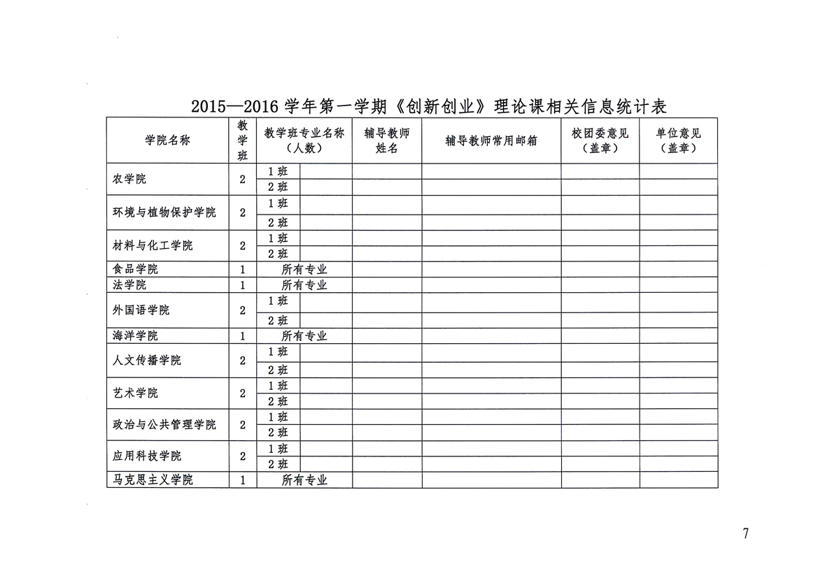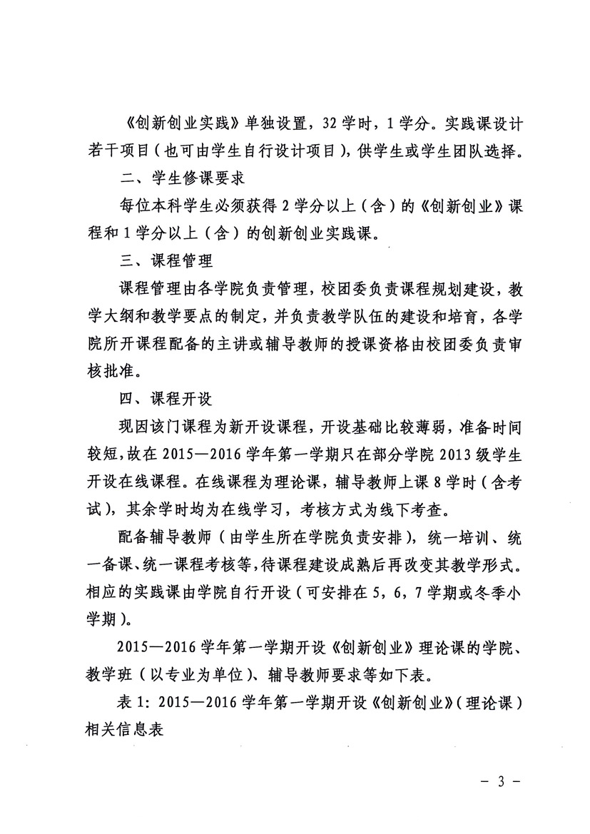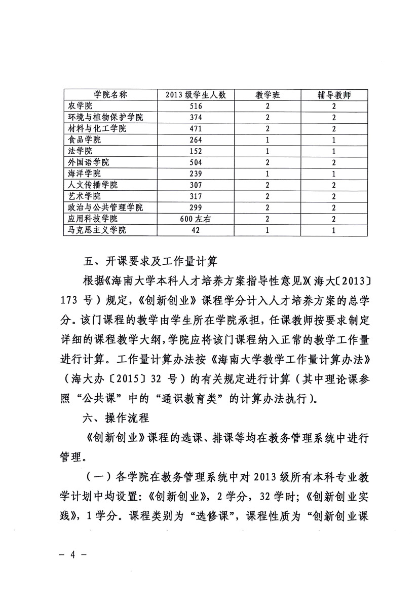 关于做好2013级普通本科专业《创新创业》课程开设相关工作的通知(海大教〔2015〕56号)