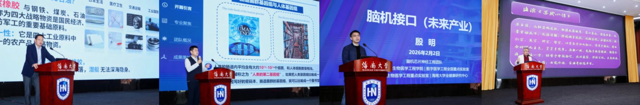 海南大学学术副校长聂宗秀、张法连,清华大学教授、海南大学特聘教授崔保国、食品科学与工程学院院长张家超、机电与工程学院党委书记张喜瑞、生物医学工程学院教授殷明、人文学院教授海滨,分别聚焦“热带海洋科技”“自贸港发展与制度创新”“人工智能与传播前沿”“生命健康”“智慧农机”“脑机接口”“东坡文化”七大主题作了精彩报告。教授们凭借深厚的学术造诣和丰富的实践经验,为同学们带来了一场融汇科技前沿与人文底蕴的学术盛宴。从海南自贸港政策解读到前沿科技发展趋势,从创新思维培养到实践能力提升,每一个主题都紧密贴合时代需求,激发了同学们对科学知识的强烈渴望和深入思考。教授们深入浅出的讲解,让复杂的理论变得通俗易懂,使同学们在轻松愉悦的氛围中汲取知识养分,拓宽了学术视野,点燃了探索未知的热情。