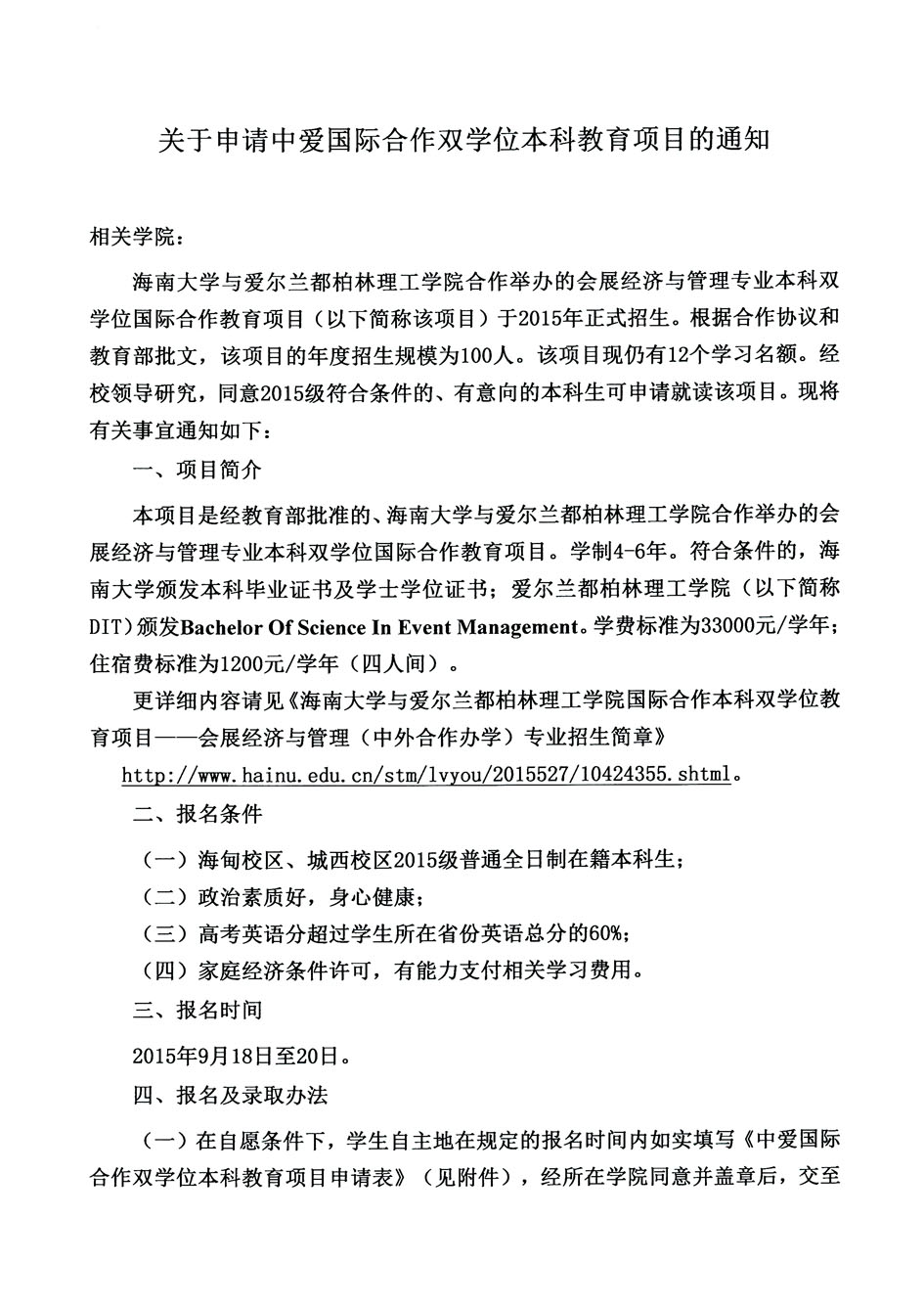 附件二:申请中爱国际合作双学位本科教育项目承诺书
