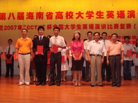 10月13日,第八届全省高校大学英语演讲比赛暨2007年“CCTV” 杯全国大学生英语演讲比赛复赛(海南赛区)圆满结束,我校参赛选手赵文箔在比赛中技压群雄,在43名参赛选手中以总成绩27.26分(满分30分)拔得头筹。