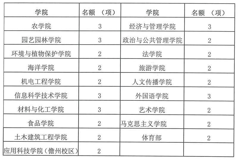 各学院推荐名额