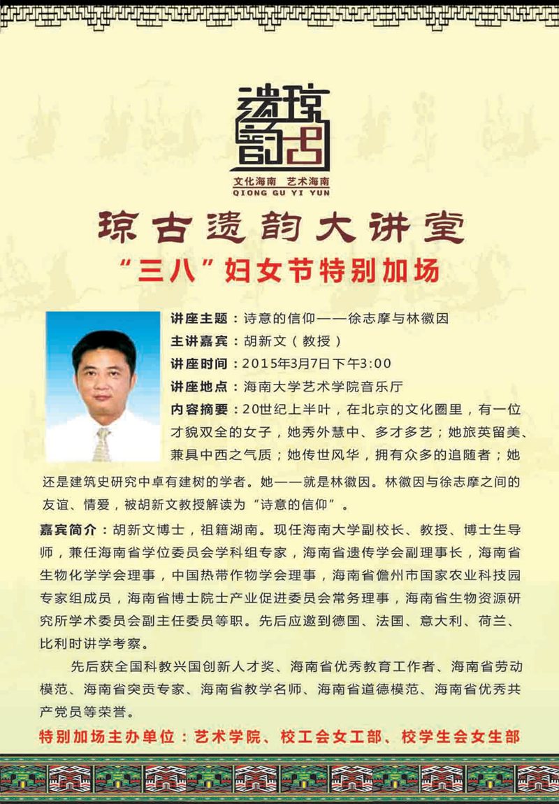 “琼古遗韵”大讲堂 “三八”妇女节特别加场