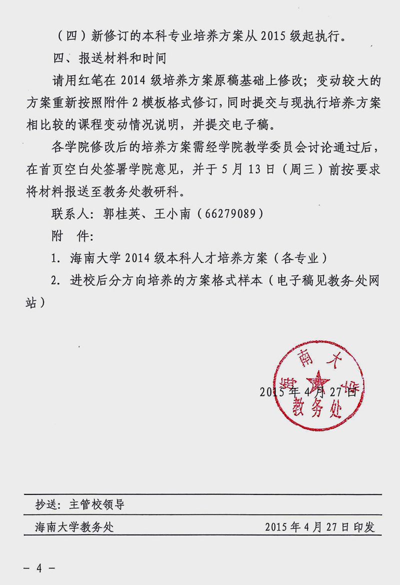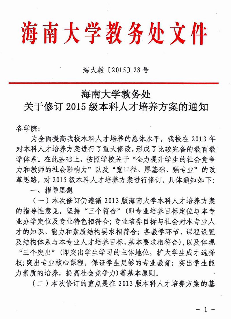 关于修订2015级本科人才培养方案的通知(海大教〔2015〕28号)