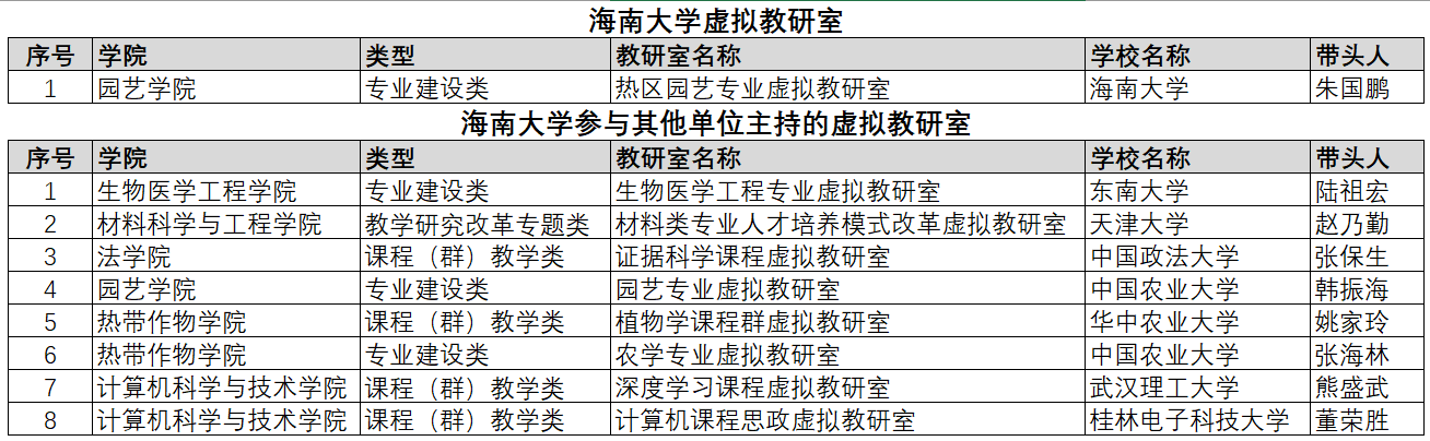 教育部首批虚拟教研室建设试点名单(海南大学)