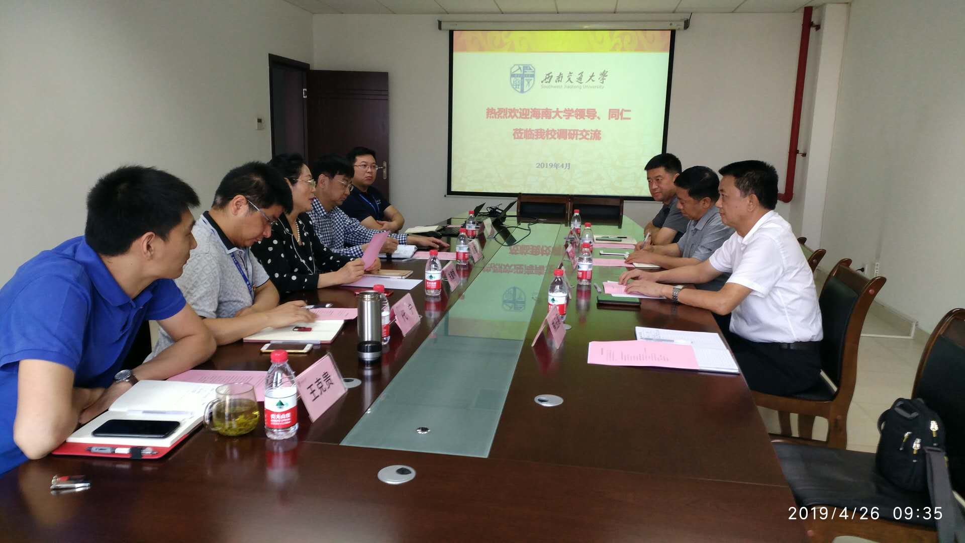 为落实省委省政府提出的“举全省之力办好海南大学”的要求和省教育厅相关部署,学习兄弟高校的先进管理经验和做法,加快推进海南大学转型升级和“双一流”建设步伐,实现内涵式发展,4月25日至26日,副校长胡新文和陈险峰率队赴四川大学和西南交通大学调研。此次调研主要围绕一流本科建设、本科教学质量保障体系建设、校园信息化建设、智慧教室建设等内容展开。调研组先后受到四川大学副校长张林、西南交通大学副校长朱健梅的热情接待,并进行了座谈交流。