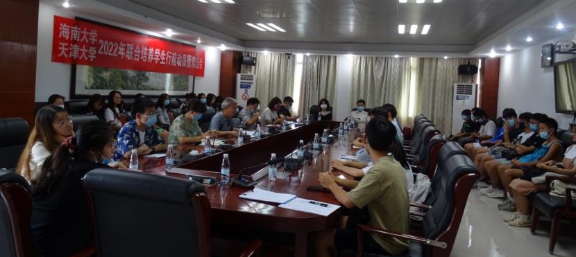 2022年6月17日下午,海南大学与天津大学2022年联合培养学生行前动员暨欢送会在办公楼401会议室召开,教务处邱锡光处长、学生工作部(处)李昌郁副部长、相关书院辅导员及全体项目学生参加会议,会议由教务处综合培养科陈黎明科长主持。