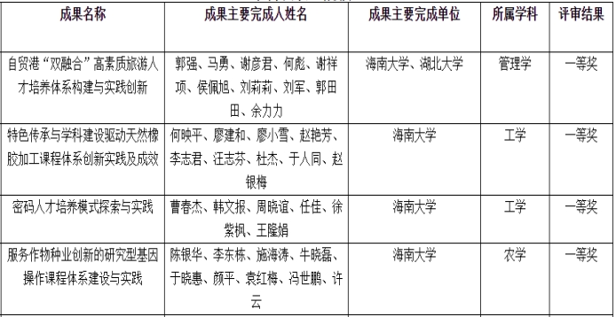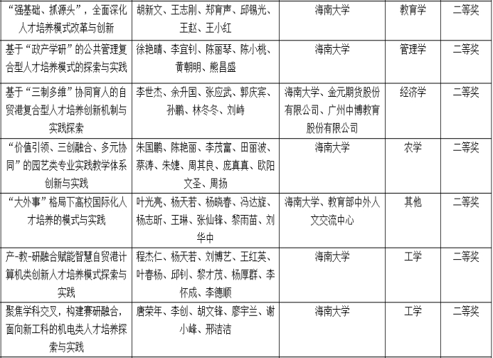 海南大学获奖项目名单