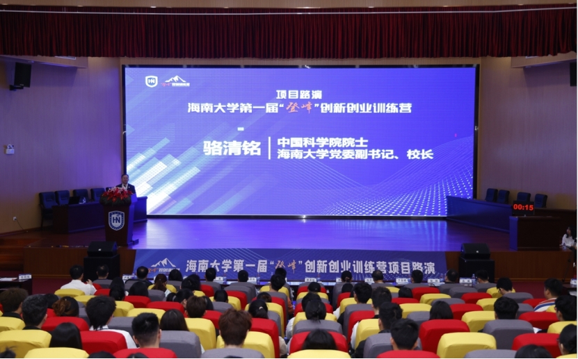 2023年3月4日,由海南大学教务处、创新创业学院、校团委、科学技术发展院联合海南大学三亚研究院共同主办的海南大学第一届创新创业“登峰”训练营项目路演在海南大学田家炳二楼报告厅隆重举行。中国科学院院士、海南大学校长骆清铭、海南省教育厅高等教育处副处长符涛、海南省创新创业教育指导委员会主任委员杨然兵等领导和嘉宾出席了开幕式。