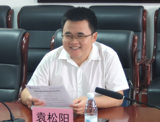 袁松阳介绍此次访问的目的并感谢海南大学提供的帮助。会上,海南大学教务处副处长谢辉凡汇报我校在四六级工作中的经验。