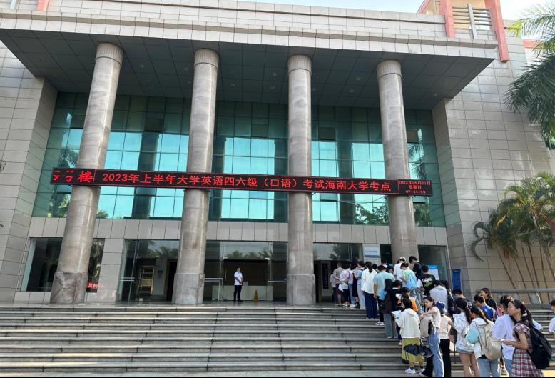 2023年5月20日至5月21日,全国大学英语四、六级口语考试在我校海甸校区9号教学楼机房举行。2023年上半大学英语四、六级口语考试在我校报名考试的考生共计514人(四级221人,六级293人)。除我校考生外,还有来自海南陵水黎安国际教育创新试验区、海南医学院、海口经济学院、琼台师范学院、三亚学院等全省12所高校的81名考生。