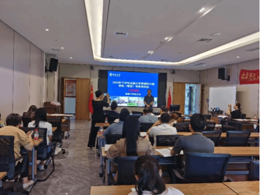 由于本次四、六级考试涉及考点多、规模大、跨校区联动任务重,学校高度重视,考前组织相关部门召开工作协调会,并组织多场考务人员培训会,对考试的流程、注意事项进行培训和业务指导,考试期间,各考点负责人全程现场指挥协调,全体考务人员坚守岗位,尽心尽责,确保了考试顺利圆满完成。