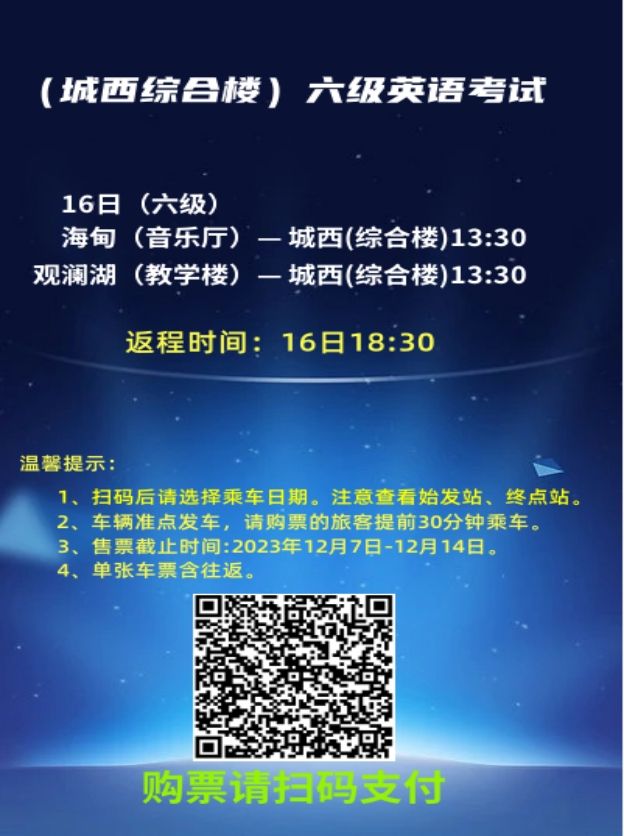 海甸校区-城西基础教学部往返(12月16日),票价:20元(往返)。