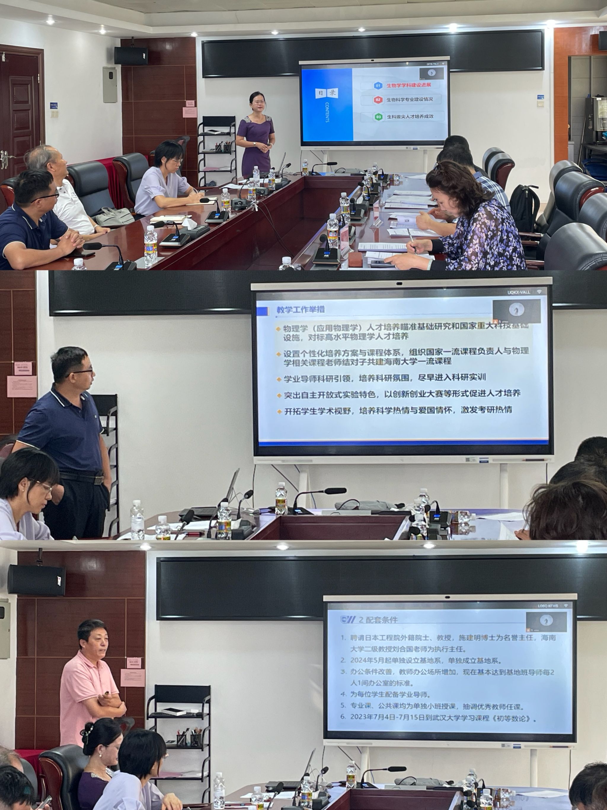 10月10日上午,海南大学基础学科拔尖学生培养基地建设中期考核在海甸校区办公楼401会议室举行。教务处处长王志刚、副处长耿刚,各基地班负责人参加了本次会议。本次中期考核特别邀请了华南理工大学“强基班”负责人文德华、王菊芳、杨启贵三位专家到会指导。会议由王志刚主持。