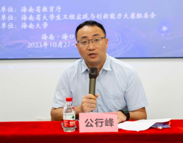 公衍峰代表主办单位在大赛开幕式上致辞,他对大赛的顺利举办表示了热烈的祝贺,对上一届赛事做了全面的总结,并对本届赛事的举办提出了明确要求。耿刚代表承办单位讲话,他表示要全力以赴做好省赛的各项组织工作,保障各高校在本届省赛中取得优异成绩。接着裁判代表和参赛选手代表在开幕式上进行了宣誓。海南大学机电工程学院廖宇兰教授对大赛赛程及赛场、裁判安排进行了介绍。