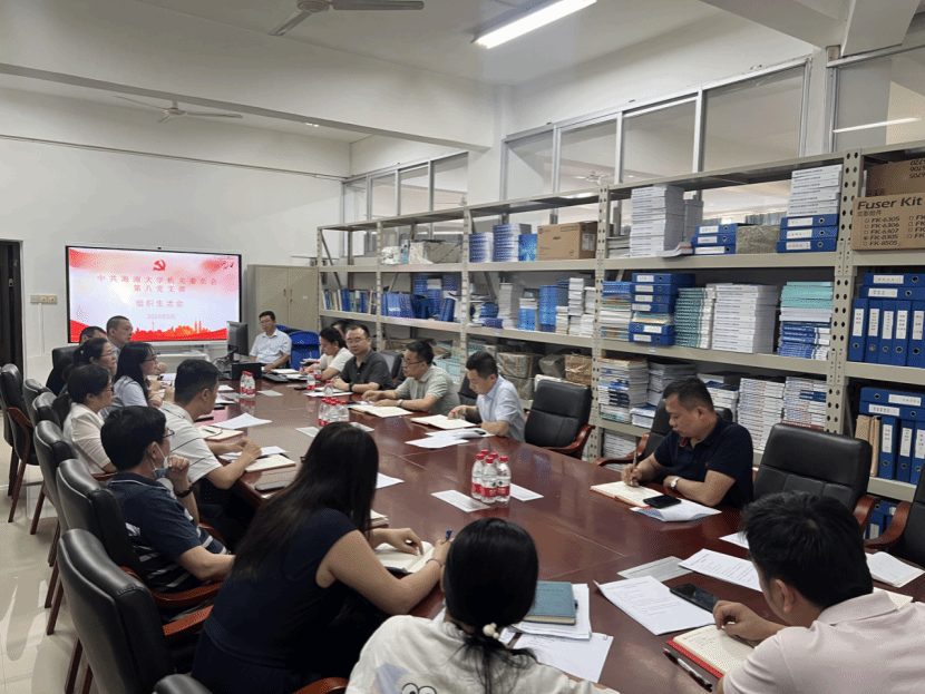 2024年4月2日上午,中共海南大学机关第八支部委员会组织生活会在教务处资料室举行。本次组织生活会围绕“加快发展新质生产力,扎实推进高质量发展”和“大力弘扬教育家精神,为强国建设民族伟大复兴伟业做出新的更大贡献”两个主题展开,校党委常委、副校长刘谦作为支部成员出席并讲话,会议由支部书记耿刚主持。